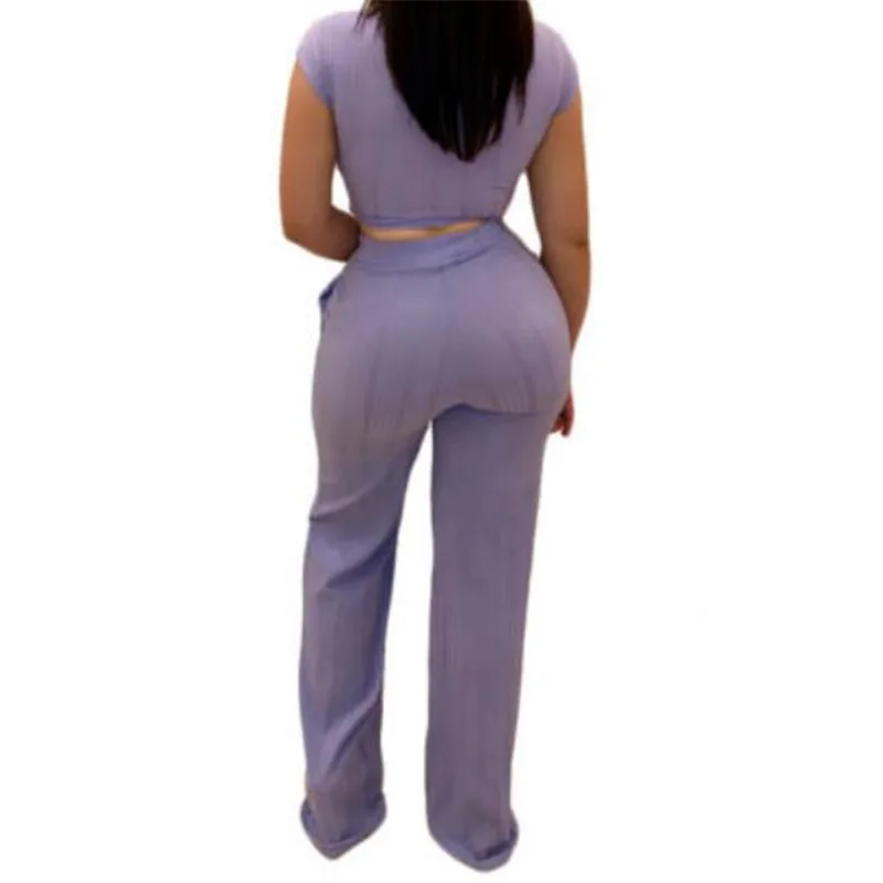 2019 Fashion Women 2 Piece Outfits Ladies New Clothing Short Sleeve Crop Top Pant Set Slim Casual P