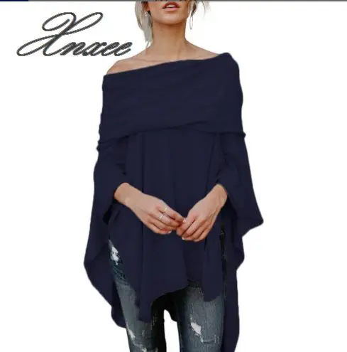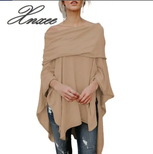 Spring Autumn Asymmetric Sweater Women Poncho Pullover Sweater Asymmetric Overlay Solid Clothing La