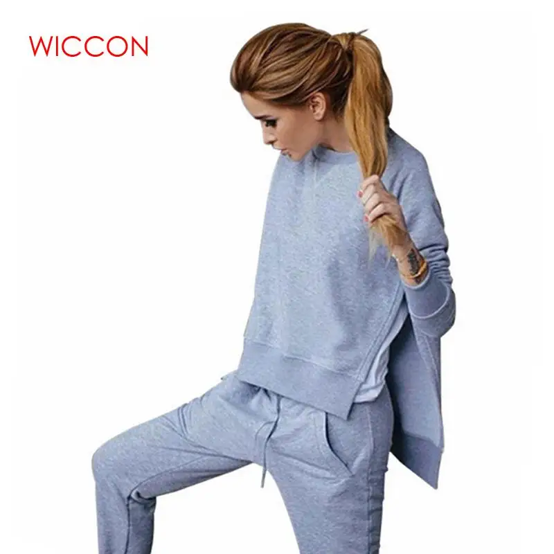HIGH QUALITY Women Tracksuit Long Sleeve Slit Solid Sweatshirts Casual Suit Women Clothing 2 Piece Set Tops Pant